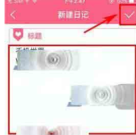 2)点击编辑框输入日记内容,最后点击右上角的【按钮】。 (如下所示)