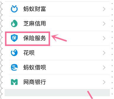 3、那么如果我们想从支付宝钱包找到入口,该怎么办呢?在支付宝钱包“我的”界面,我们可以看到“保险服务”选项,点击进入。