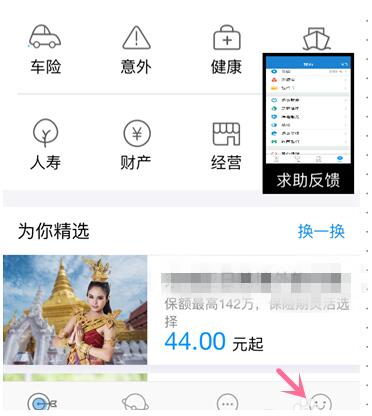 4、这样我们就进入了蚂蚁保险的主界面。如果我们想要查看个人保险界面,我们需要再次点击底部的“我的”选项。