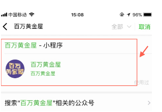 2.点击微信,搜索【百万黄金屋】点击进入小程序;