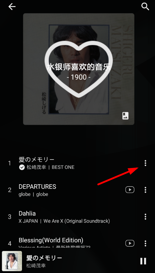 2、成功找到您要下载的歌曲后,点击右侧三点选项,即可成功调出菜单列表进行设置。