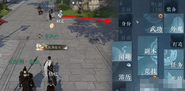 1.首先进入游戏后点击右上角的菜单,然后从右边的菜单中选择身份。
