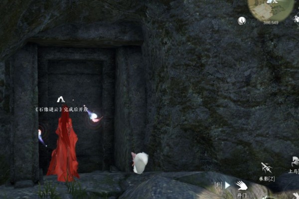需要在前面的牌坊拜完,触发“石像迷云”任务,完成后就可以进去了。当然也可以卡在别人家门口,就是需要抓住机会。你需要找到《石像疑云》后面的珠子,但是任务是追踪的,你只要跟着过去找就可以了。如果你进洞打了一头野猪,残留的血可以锤在上面让你虚弱。