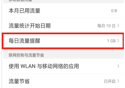 第三步:点击【每日流量提醒】,根据需要设置每日限制流量。