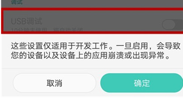 第七步:打开开发者选项后,点击打开底部的【USB调试】。出现提示时,单击“确定”。