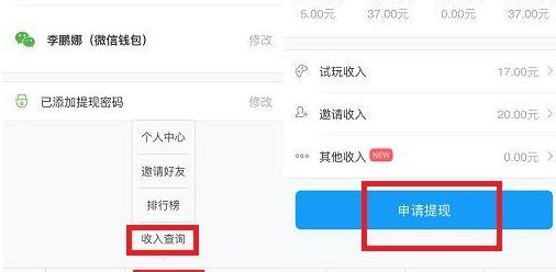 3、然后点击“我的信息”-“收入查询”,然后点击“申请提现”,如图: