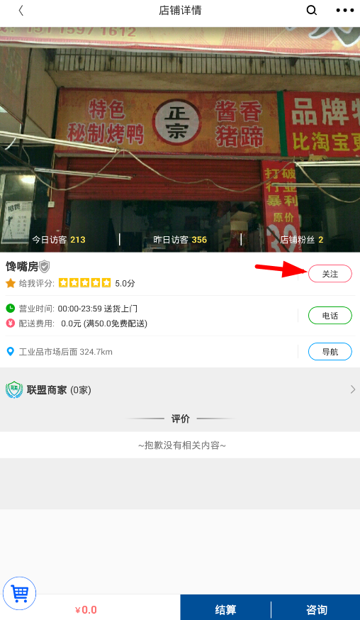 2、然后在首页,你可以看到你周围的店铺以及店铺的具体位置。点击进入店铺页面,不仅可以直接购物,还可以关注店铺!