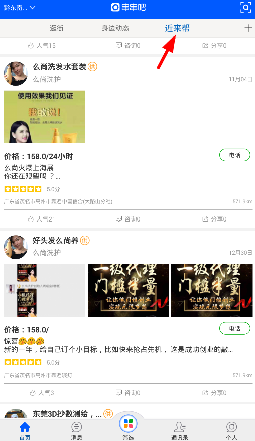 4.此外,通过“最近帮助”功能,您还可以找到您周围的各个商店提供帮助并发布您的需求!