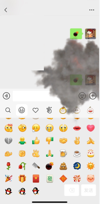 1.炸弹表情:用户发出一个炸弹表情,屏幕会显示一个炸弹动画。