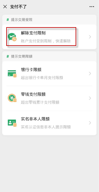 5.在“不能支付”界面取消支付限制;