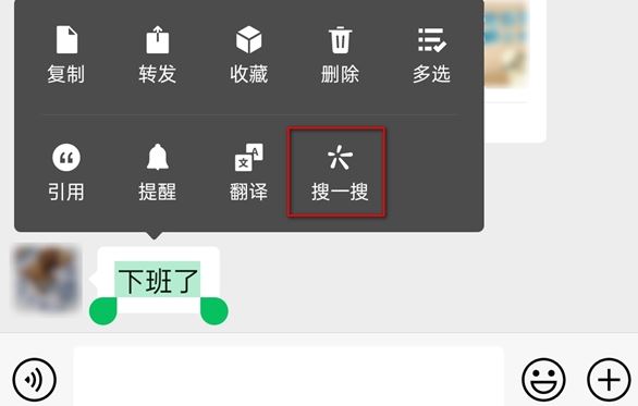 用户可以在对话框中按住选中的文字,弹出的导航栏中最后一个功能是“搜索”。用户可以在对话框中直接搜索自己想要的结果。比如对方给他们发一串快递单号。用户按下快递单号后,可以在直接弹出的导航栏中搜索,跟踪快递的进度。