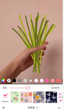 在编辑选项中选择“涂鸦笔”选项,在手持的地方画出花朵。