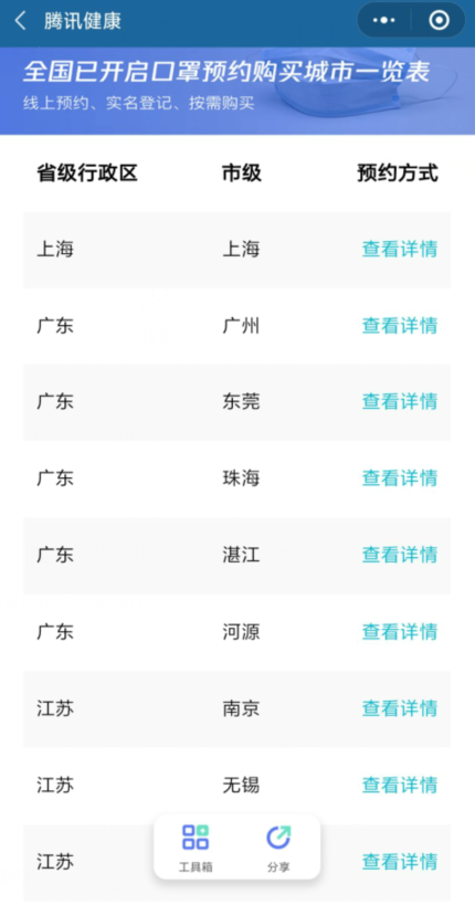 最后,进入后,找到你所在的城市和地区,点击查看详情。