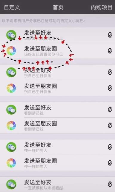 苹果手机用户只需要下载一个朋友圈的小尾巴,这是目前安卓用户无法做到的。