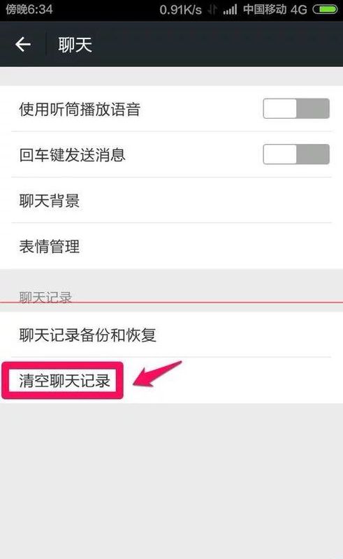 3.点击聊天界面下方,清除聊天记录。当然也可以备份聊天记录清空。