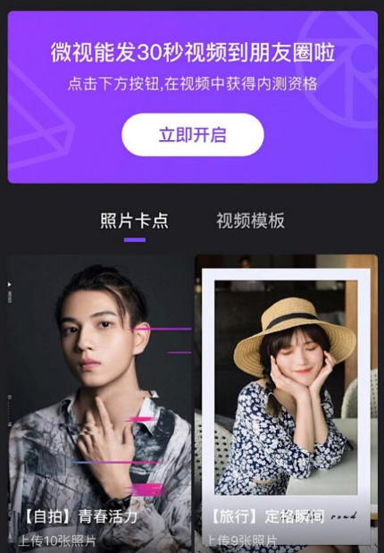 此外,微视还为用户提供了“拍照卡点”和“视频模式”两个版本。前者需要上传3 -10张照片生成小视频;后者可以直接选择30秒内的视频。