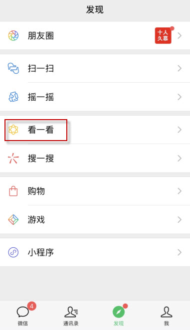 打开微信-发现-看看