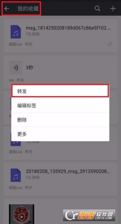 回到微信的“收藏”功能,将收藏的语音转发给好友。