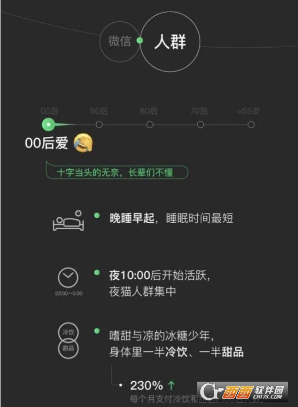 70后最喜欢的表达是“窃笑”。他们闲暇时爱刷朋友圈,每天23: 30左右入睡。