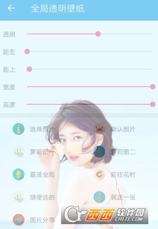 2.从手机本地相册中选择要设置的透明壁纸后,还可以通过进度条调整壁纸的透明度、方向、宽度和高度。