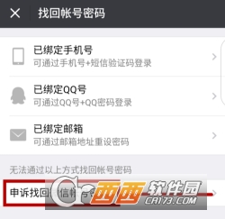 点击页面中间位置找回密码,在通过微信提供的几种方式都无法找回账号密码时,选择认领找回微信账号密码。
