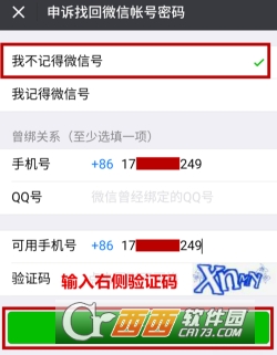 选择我不记得微信号,按照提示填写注册手机和可用手机,输入验证码,点击下一步。