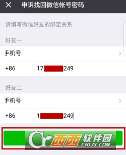 在填写微信好友绑定关系的页面,因为我们没有添加任何好友到这个投诉的微信,所以边肖填写了注册的手机号。是的,你可以写两遍你自己的号码,这不重要。填写并点击下一步。