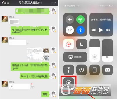 然后进入微信语音界面,点击状态栏点击iOS自带的【录屏】功能直接播放微信语音。