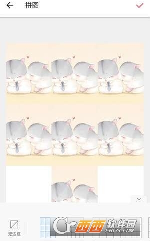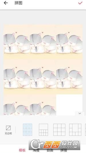 在美图秀秀首页点击【拼图】,上传9张图片,第6、8、9位置有拼图,其他位置放白色图片,然后点击【开始拼图】。记得在这里选择无边框的【九宫格】模板,点击右上角的【√】保存。