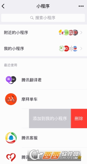 第二种:在“发现-小程序-最近使用”列表中,选择一个小程序,向左滑动,点击添加;