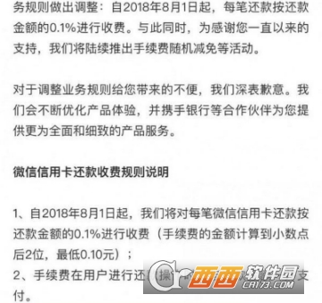 1.2018年8月1日起,每笔还款按还款金额的0.1%收取(手续费计算到小数点后2位,最低0.1元)。