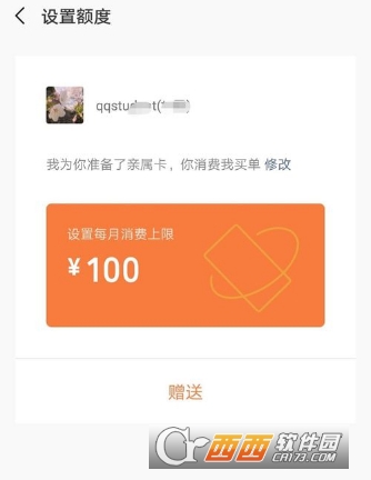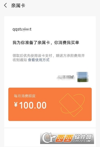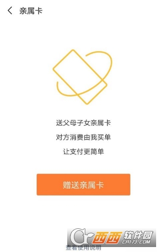 3.点开亲戚卡后,会显示赠送亲戚卡,对方消费后你就可以买单了,对于没有微信的人来说非常方便快捷。