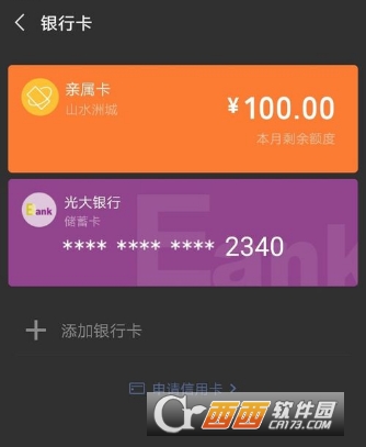 7.对方收到卡后,可以查看自己的亲属卡。银行卡绑定的地方,显示余额,随时可以解绑。