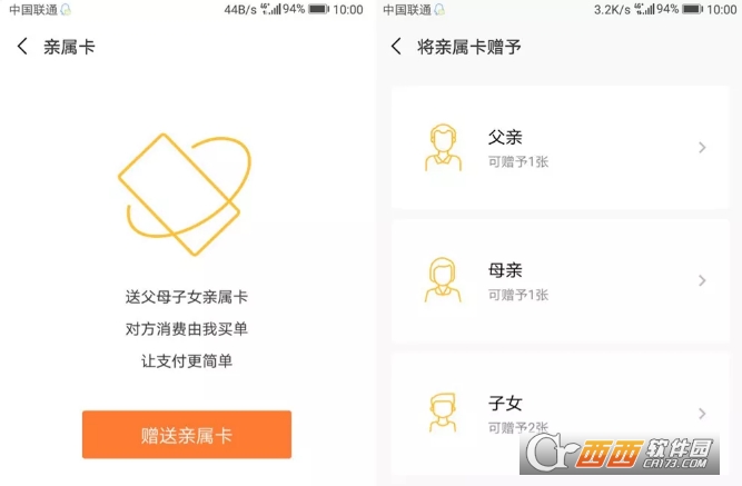 进入“亲情卡”页面后,可以选择将“亲情卡”送给父亲(1张)、母亲(1张)、子女(2张)。有网友戏称“二孩家庭卡充分考虑二胎政策”。