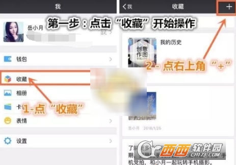 第一步:首先打开手机中的微信,然后在我的界面中点击收藏夹,再点击右上角的+号,如下图所示。