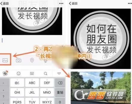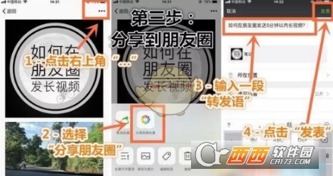 第四步:最后将“长视频”分享到朋友圈。之后点击右上角的“…”,然后选择“分享朋友圈”,再输入一条“转发消息”,最后点击右上角的“发布”。