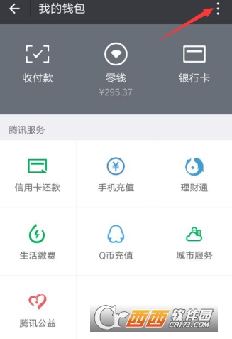在“我”中找到“钱包”,打开钱包。右上角有三个点。