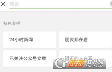 并且在搜索页面有专门的栏目推荐,目前包括“24小时新闻”、“我所有的朋友都在看”、“关注微信官方账号文章”、“附近的人都在看”。