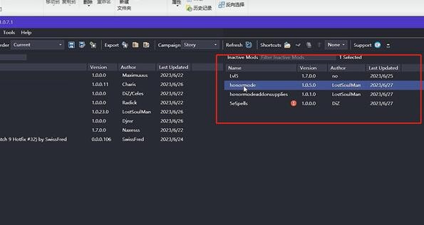 4.将新添加的MOD从右边拖到左边。
