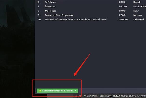 6.左下角的绿色弹出窗口表示MOD已经成功安装。