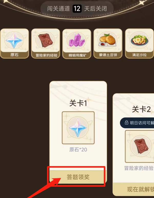 活动期间每天开放一关,用户可以参与穿越,获得任务一关奖励,并获得抽奖机会。每个级别的奖励数量有限,先到先得。