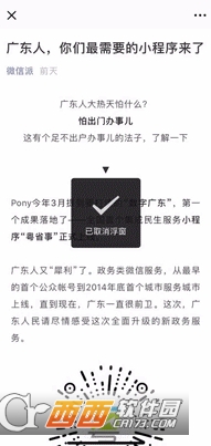 浏览完毕后,只需将浮动窗口拖动到右下角的“取消浮动窗口”区域,或者点击文章页面右上角菜单中的“取消浮动窗口”按钮,即可关闭浮动窗口。