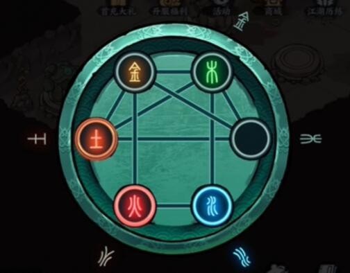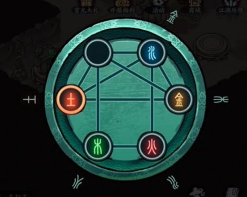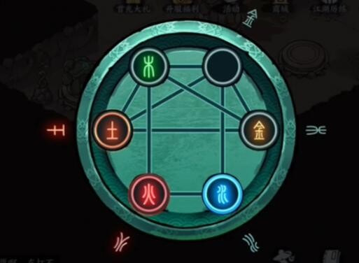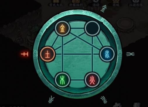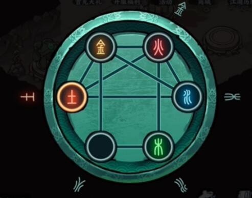 5.把[木]移到[金]的位置,使[火]移到[木]的位置,[水]移到[火]的位置。