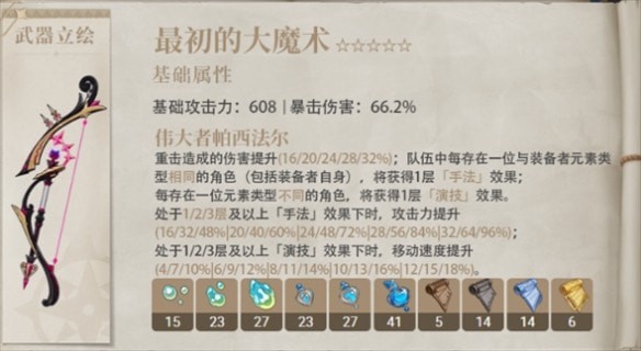 1.基础攻击力大于若水,是优秀的五星弓箭。