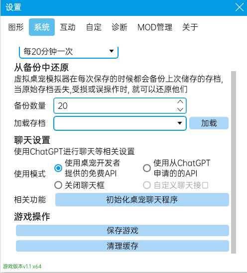 2.在这里选择使用板宠开发者提供的免费API,然后保存游戏。