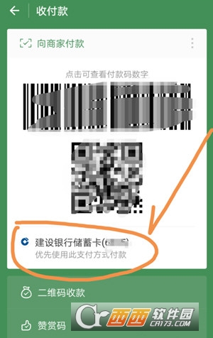 点击银行卡作为支付方式后,可以看到银行卡已经作为支付方式显示在二维码下,如下图所示。