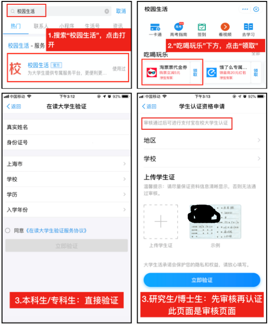 参加本次活动只需在支付宝中搜索“校园生活”即可完成学生认证。