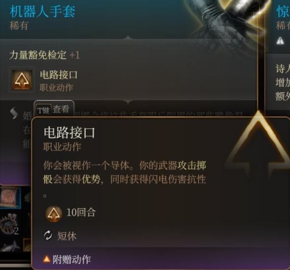 机器人手套的作用是给我们十轮骰子滚动的优势,同时获得雷电伤害抗性。