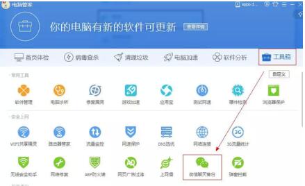 在电脑上下载安装【QQ电脑管家】,进入【工具箱】-【微信聊天备份】,根据提示信息备份聊天记录。