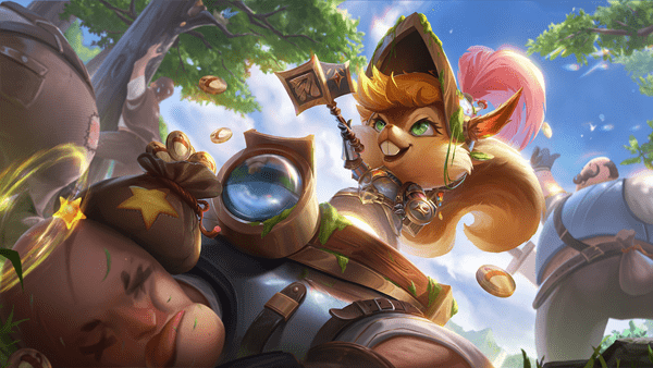 第一段:奇奇原地竖起弹弓,进入超远距离投射状态,持续8秒。期间奇奇获得三颗超级坚果,利用橡子冲击和天降松塔在投射状态下执行奇奇的免疫控制效果并获得500点护盾,但不能正常攻击和移动。